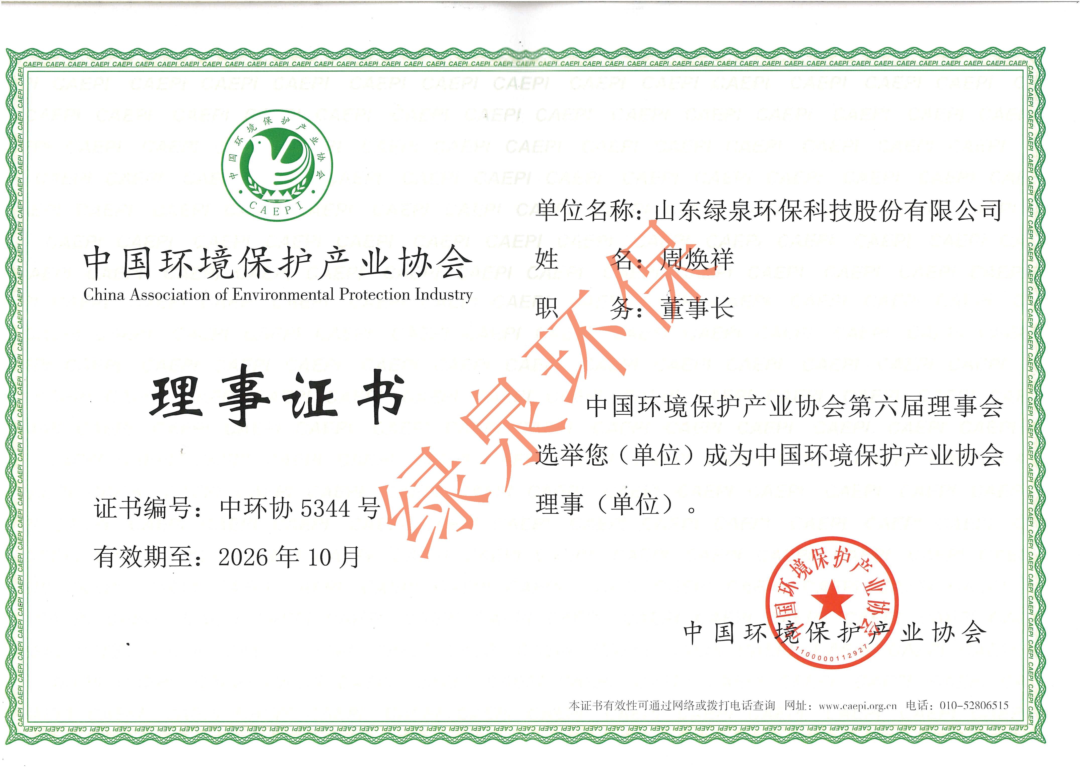 中國環(huán)保產(chǎn)業(yè)協(xié)會理事單位