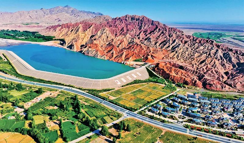 黨的十八大以來(lái),經(jīng)過(guò)頑強(qiáng)努力,我國(guó)天更藍(lán)、地更綠、水更清,萬(wàn)里河山更加多姿多彩。圖為2023年6月15日,甘肅省張掖市臨澤縣的紅山灣水庫(kù)與丹霞美景構(gòu)成一幅“戈壁水鄉(xiāng)”生態(tài)和諧絢麗多彩的畫卷。人民圖片 王將/攝