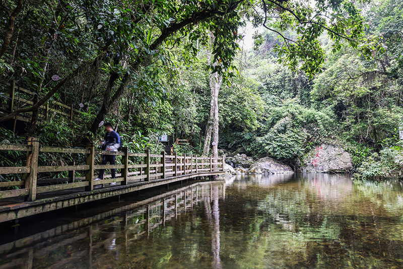 游客在海南熱帶雨林國家公園五指山片區(qū)的仙女潭游覽(2022年5月17日攝)。新華社記者 張麗蕓 攝